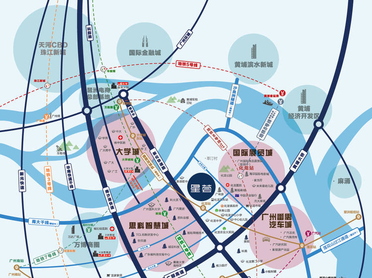 地铁七号线:连接广州南站和大学城南站,距离项目约5公里,车程约13分钟。