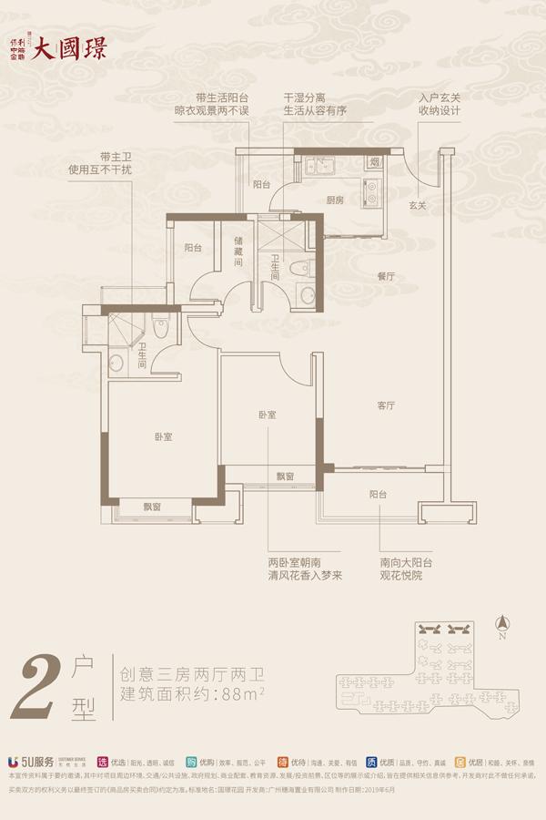 2室2厅2卫-1/2/4栋建面88平户型
