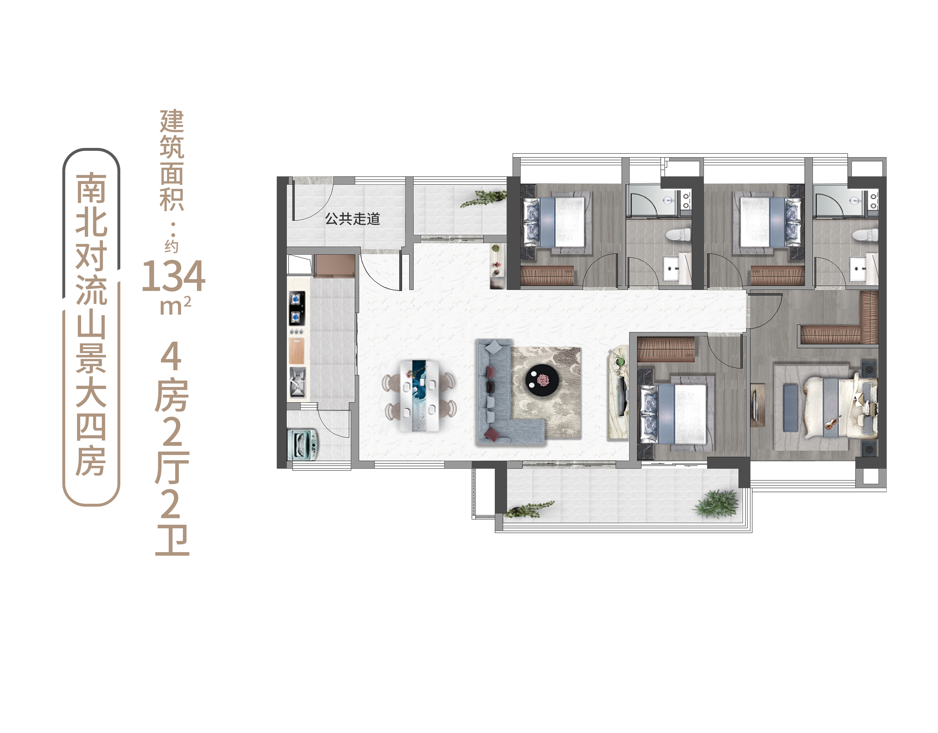 4室2厅2卫-134㎡南北对流横厅设计