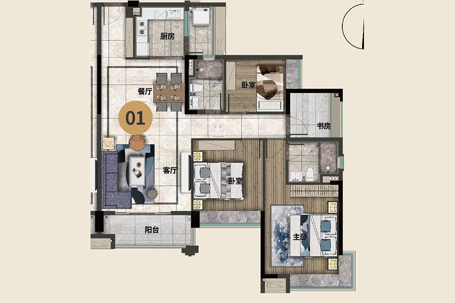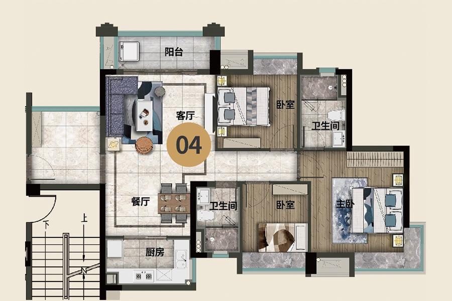 3室2厅2卫-3栋建面约123平3+1房2厅2卫户型