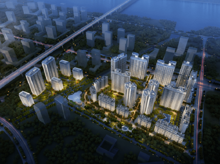 越秀·明珠天悦江湾分两期开发,1-12栋为一期,13-29栋为二期,总占地29万方,总建面41.2万方,绿化率35%,住宅容积率3.9,叠墅容积率2.8。