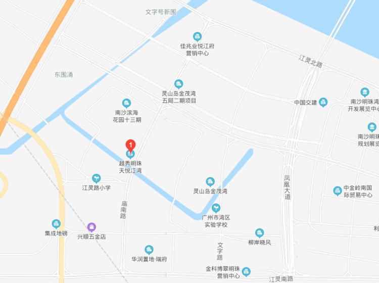 南沙 广东省广州市南沙区明珠湾起步区灵山岛尖庙南路江灵路小学旁越秀明珠天悦江湾