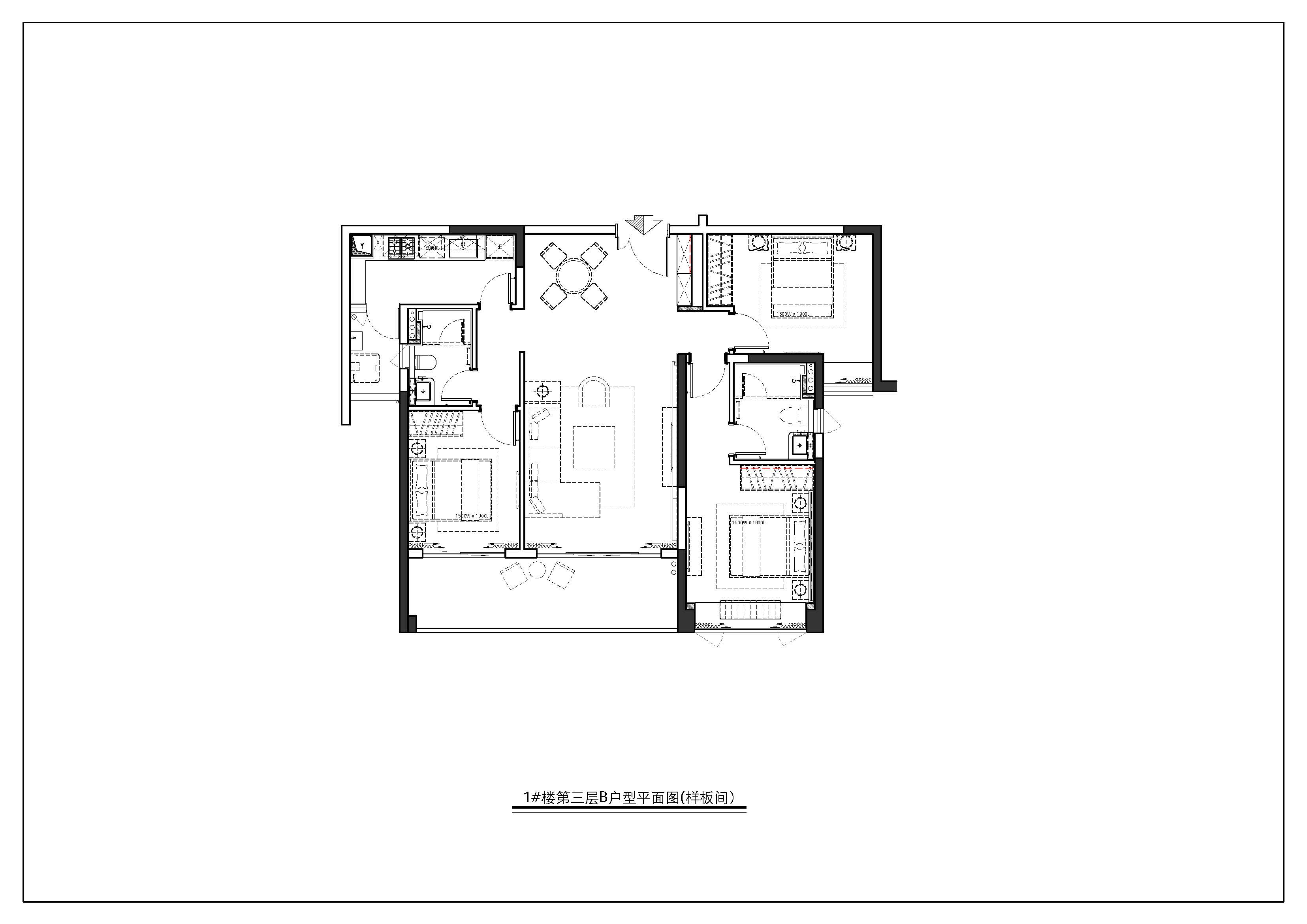 3室2厅2卫-1#第三层B户型