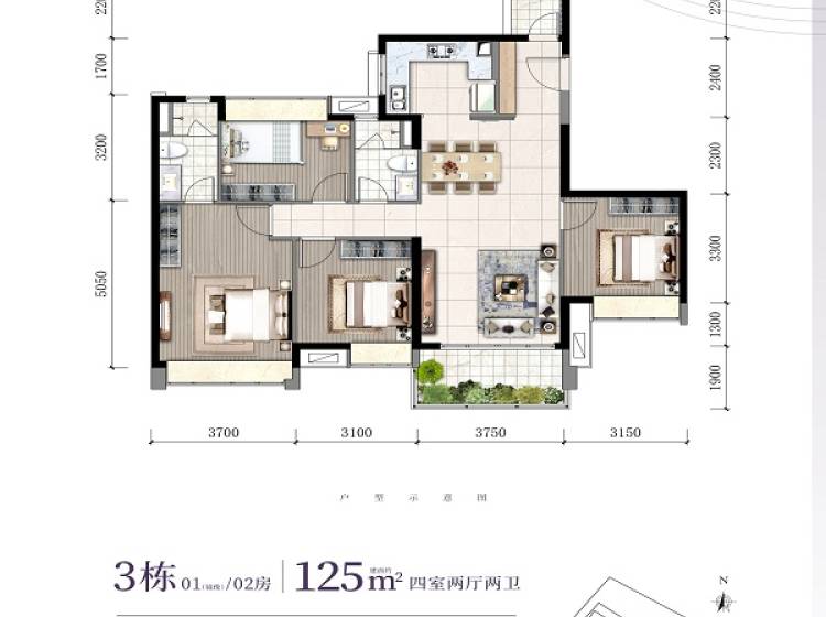 4室2厅2卫-125㎡单位