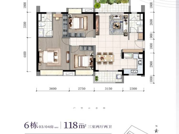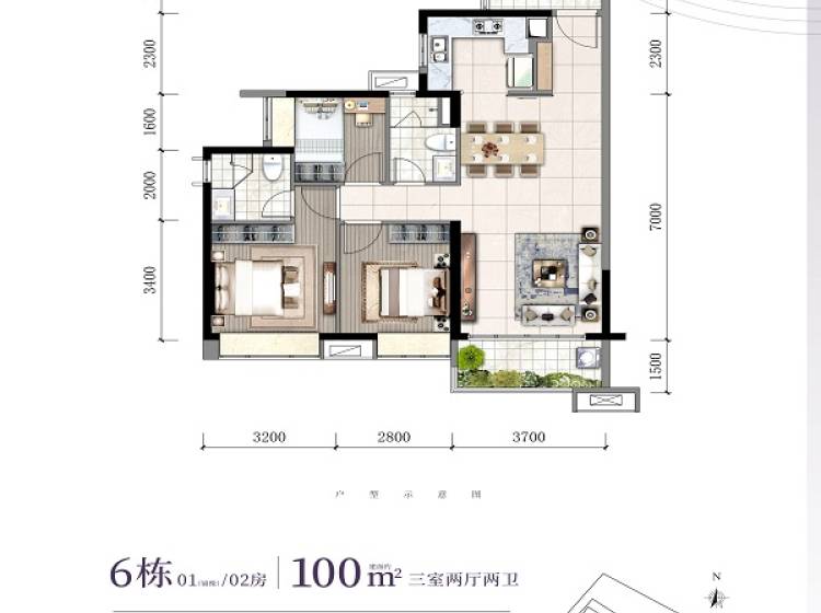 3室2厅2卫-100㎡单位
