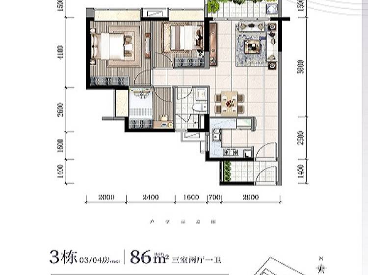 3室2厅1卫-86㎡单位