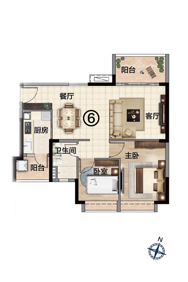 2室2厅1卫-G9栋06户型