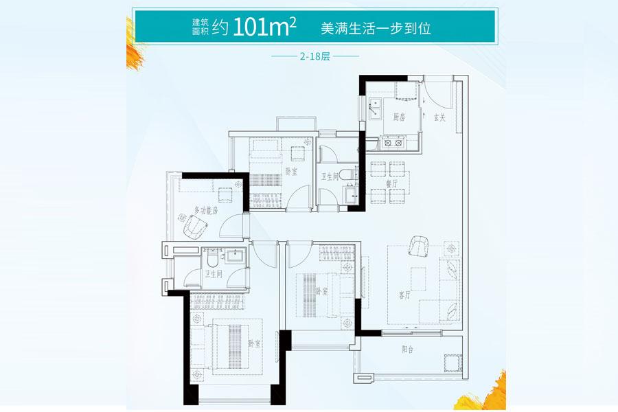 3室2厅2卫-建面101平户型
