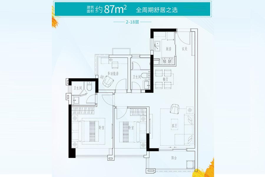2室2厅2卫-建面87平户型