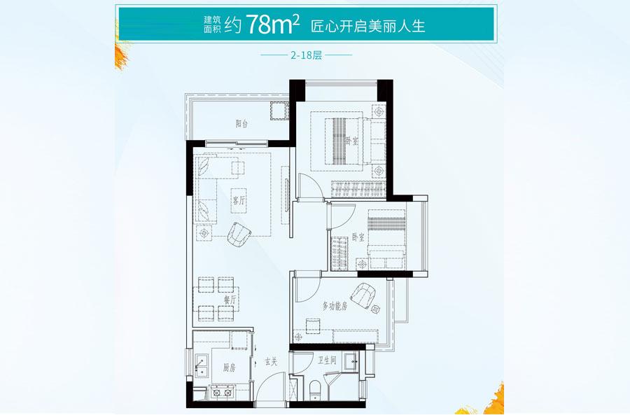 2室2厅1卫-建面78平户型