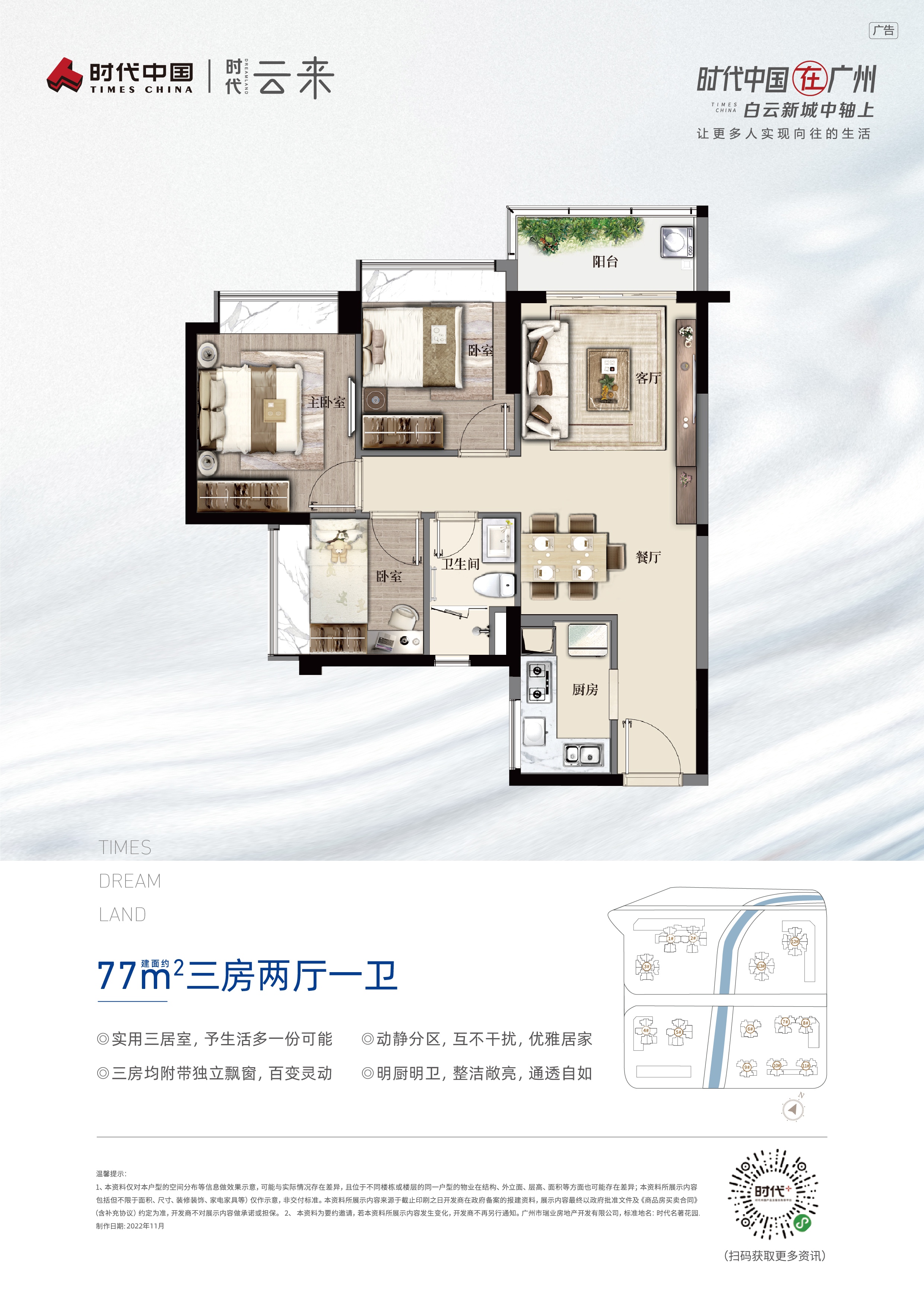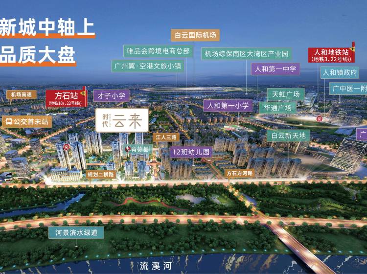 时代重回白云,于流溪河畔,落子航空产业价值创新园少有纯住宅板块,项目匠筑75-100㎡精致舒适空间,坐享密度远超老越秀的教育资源,雄踞地铁三号线及空港大道,畅享15min空港经济区,为年轻的心,铸就白云城市美学中心。