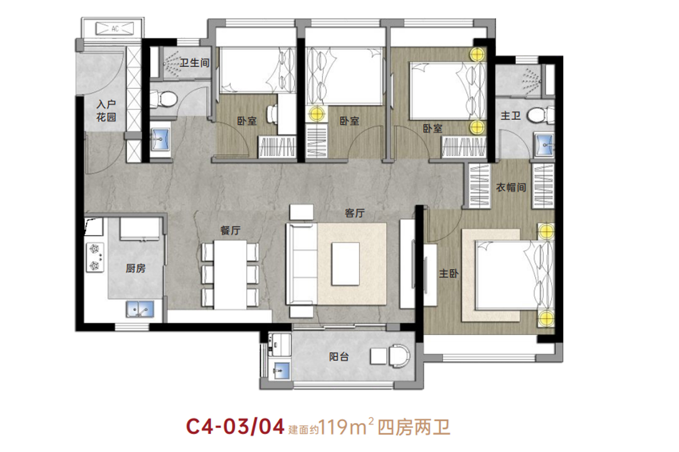 在售 户型方正 全明格局 主卧带卫 干湿分离