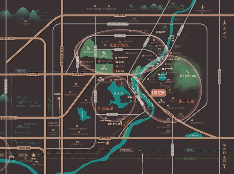 东原印江澜位于增城区增江街道,距离增城万达广场中心约5km,为增城主城区未来10年重要发展核心区域,地块毗邻广汕公路,15分钟可快速到达增城市区商圈。