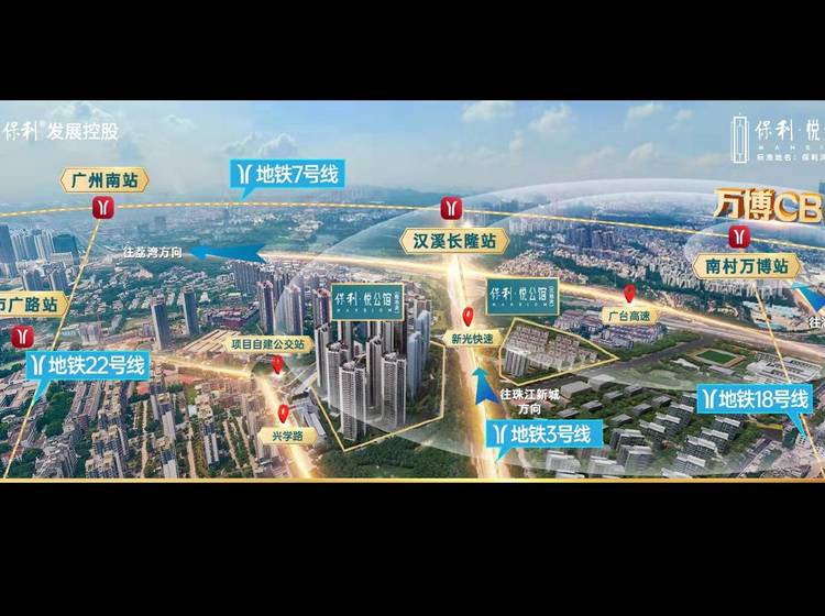 保利•悦公馆,坐落于广州主城番禺区千亿万博旁,紧邻新光快速,半个小时直达广州各区,22号线祈福站(建设中),一站直达广州南站,多维立体交通畅达港珠澳大湾区,项目总建面约24万㎡,是保利在番禺醇熟片区匠造标杆项目,Well2.0集和社区,低密多元配套产品引领市场。