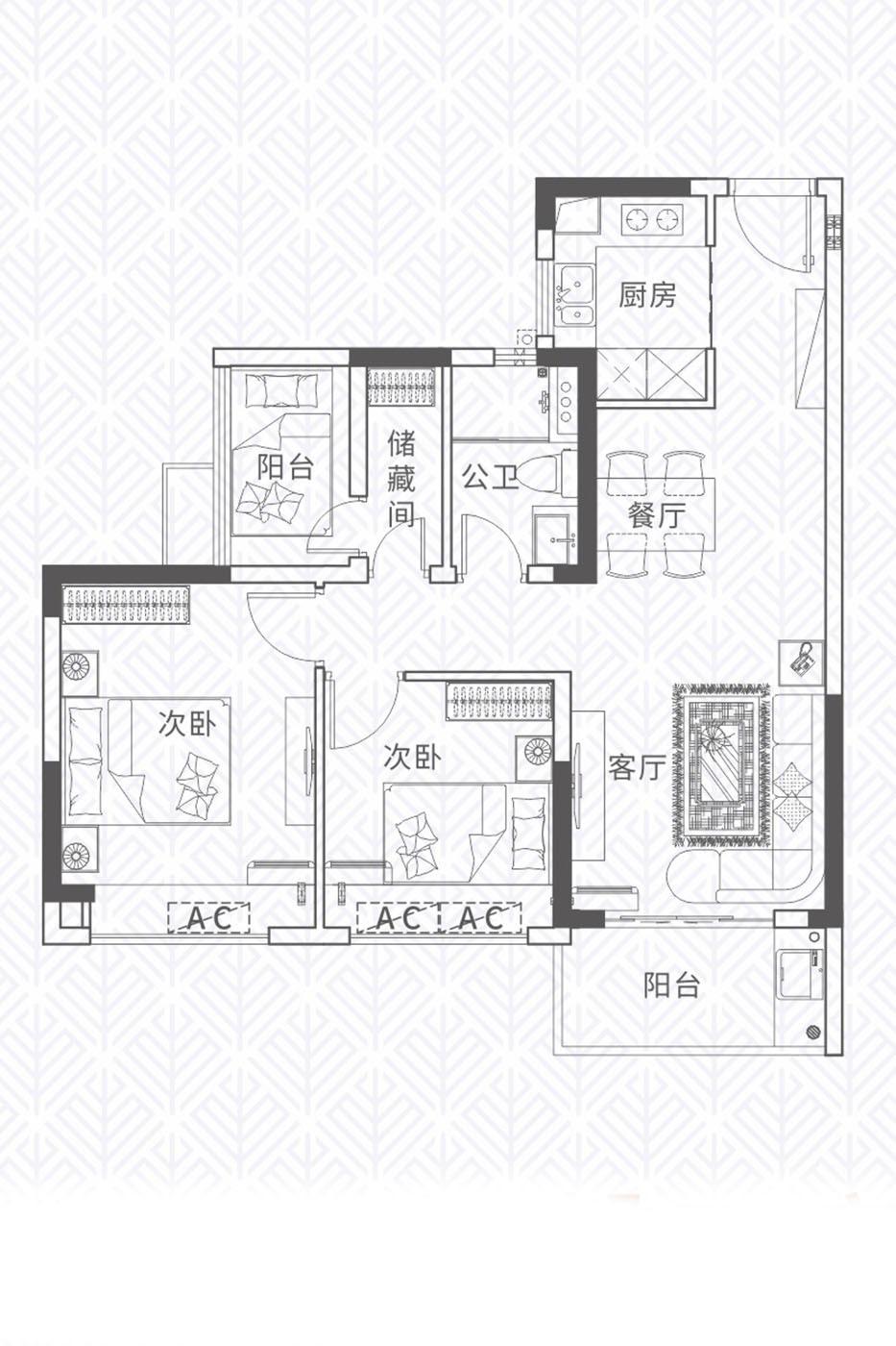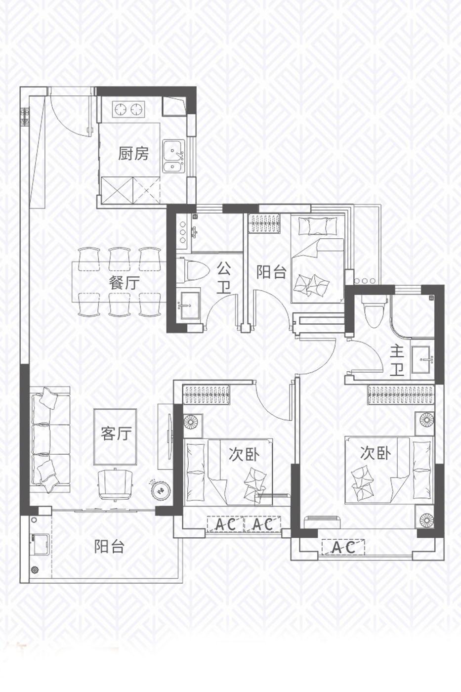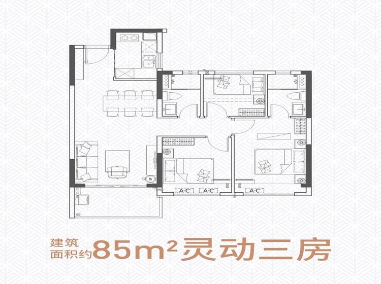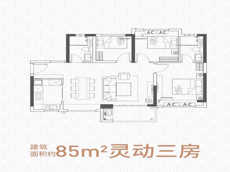 3室2厅2卫-85㎡三房
