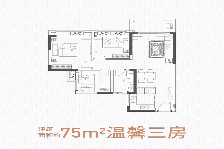 3室2厅1卫-75㎡三房