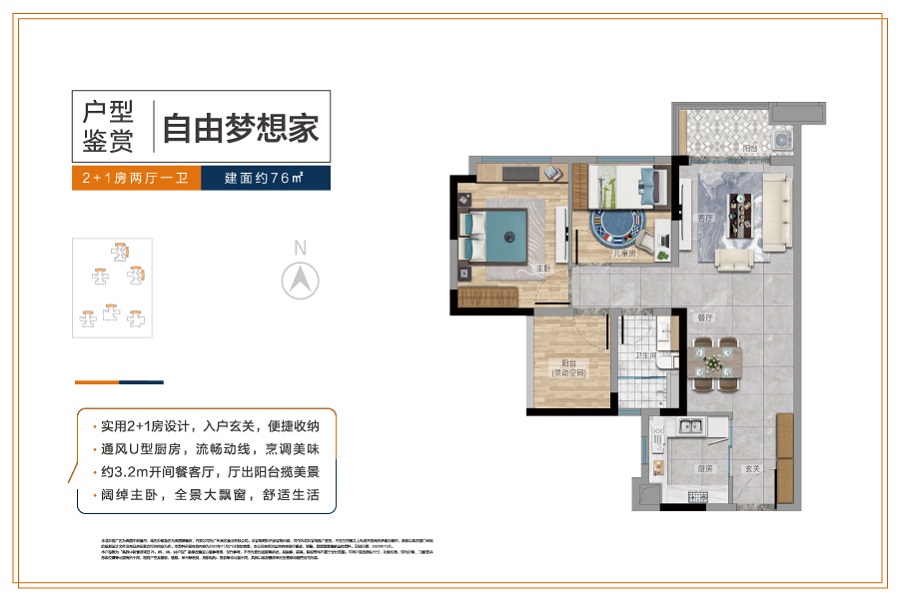 3室2厅1卫-76㎡“2+1”房