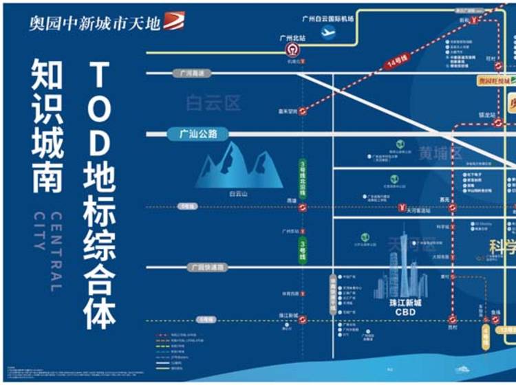 奥园中新城市天地项目位于中新地铁站,属于地铁上盖物业,拥有超20万方城市商业综合体,多元业态融合,吃喝玩乐购一站式解决,三站快线到天河,享3横2纵2地铁1城轨交通路网,产品以76-98㎡的N+1三至四房,同等面积多一方,宜商宜居。
