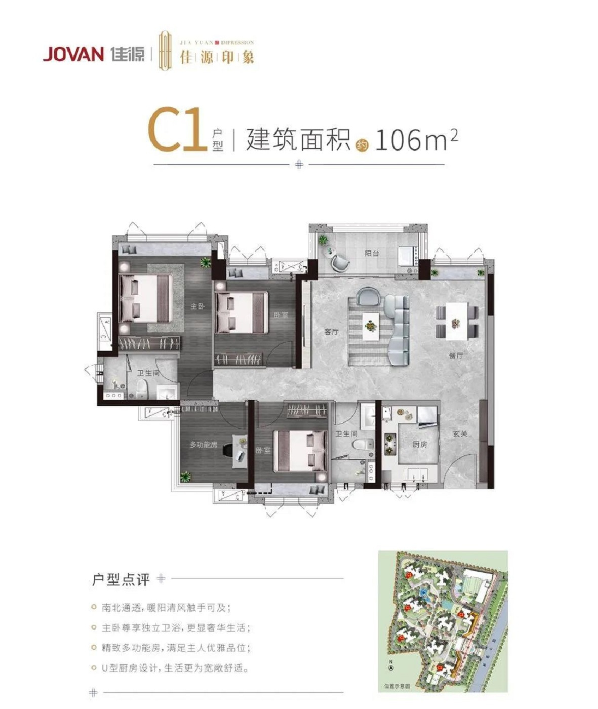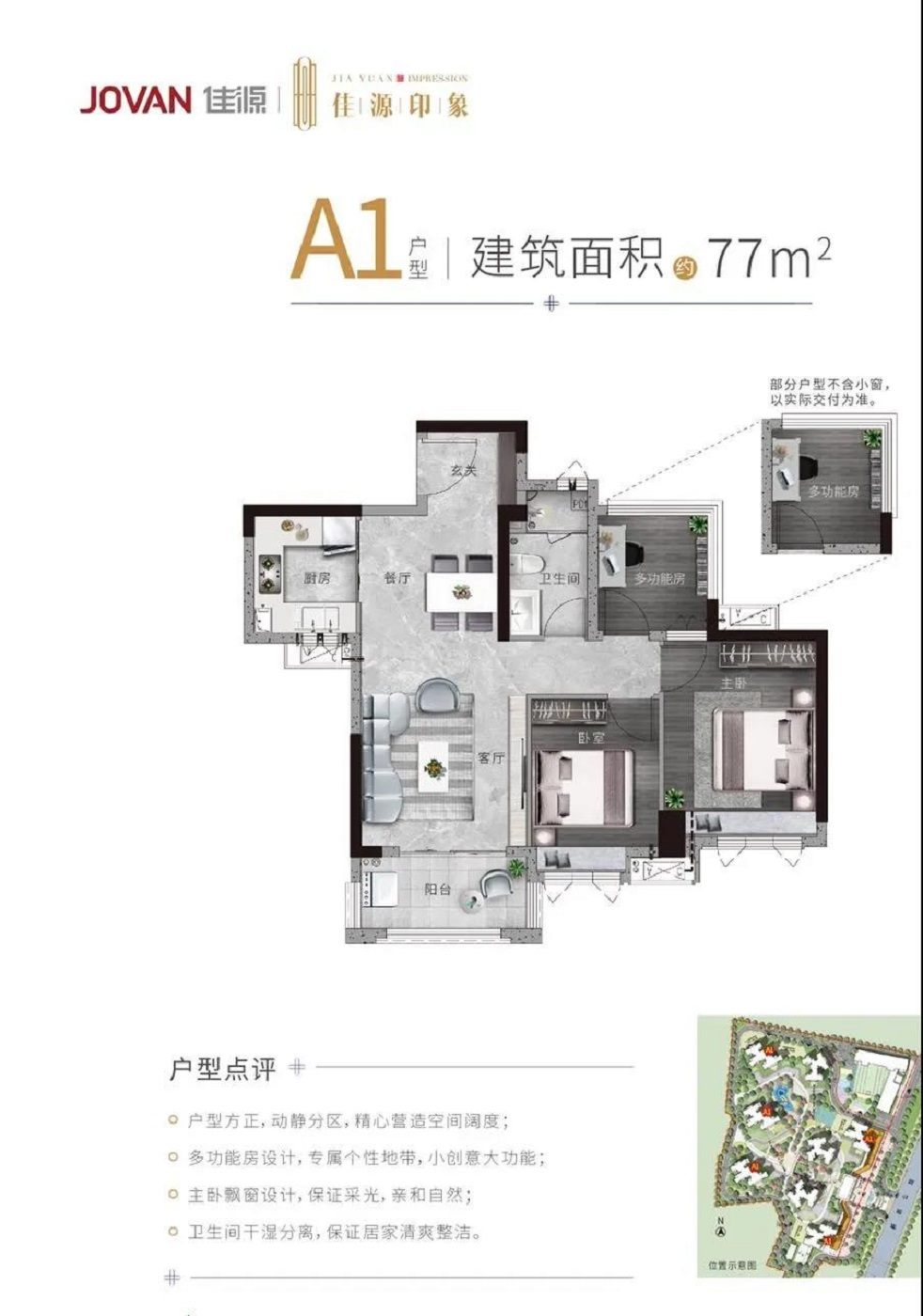 佳源印象总占地面积约3.9万平方米,总建筑面积约18万平方米,容积率3.2,绿化率30%,由2栋小高层和6栋高层组成,项目的建筑面积约75-120方的三至四房为主。