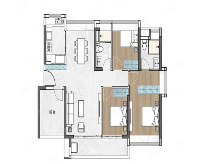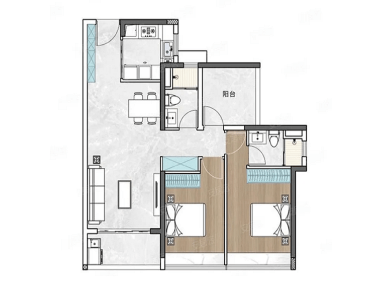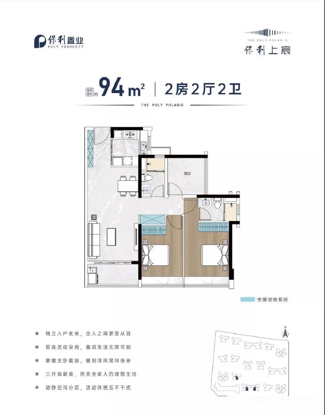 2室2厅2卫-94㎡户型, 2室2厅2卫1厨