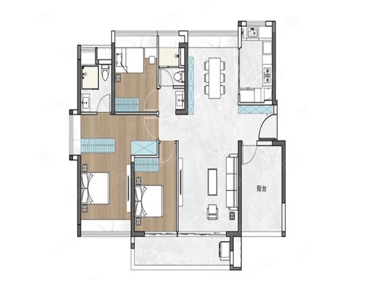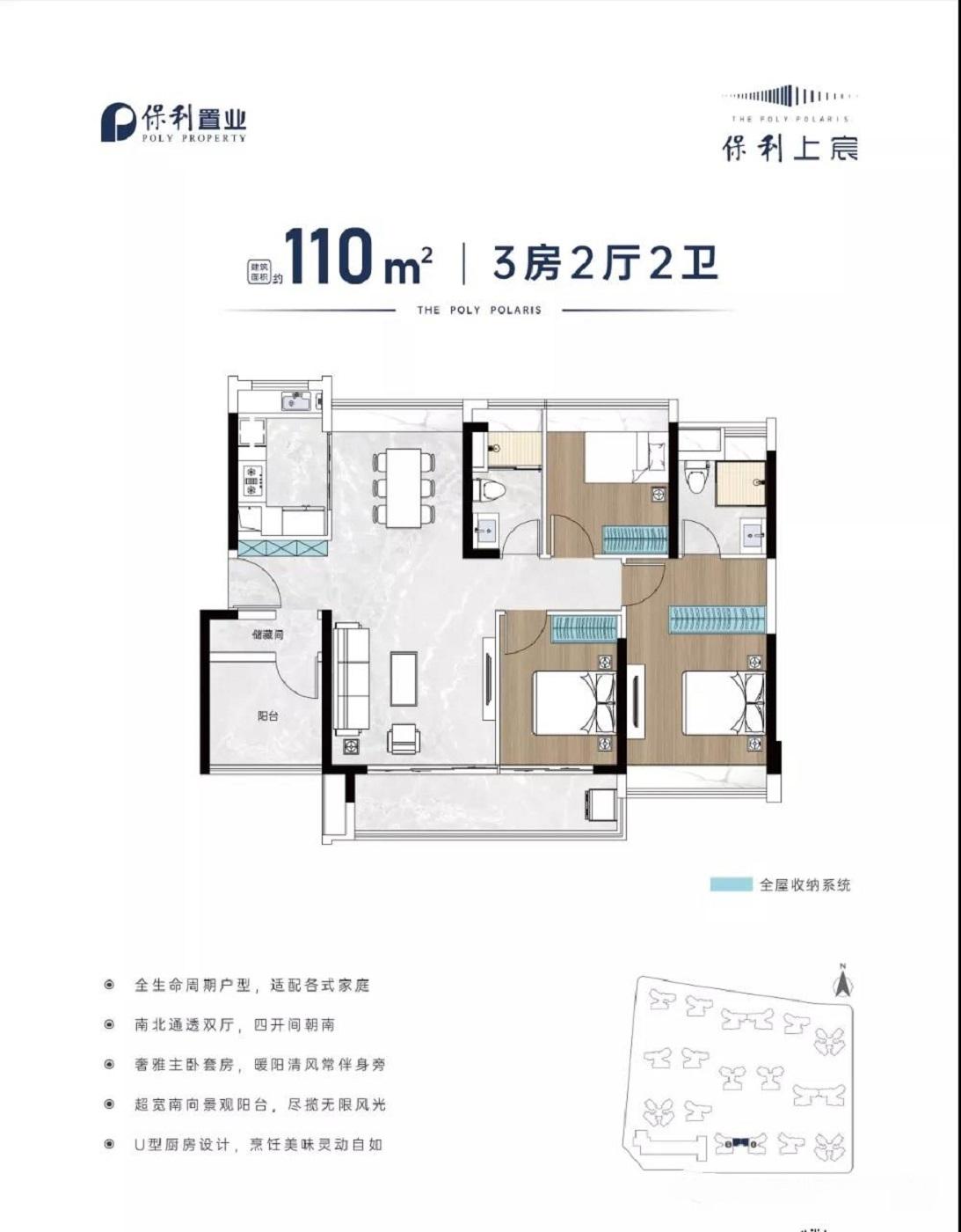 3室2厅2卫-110㎡户型2, 3室2厅2卫1厨
