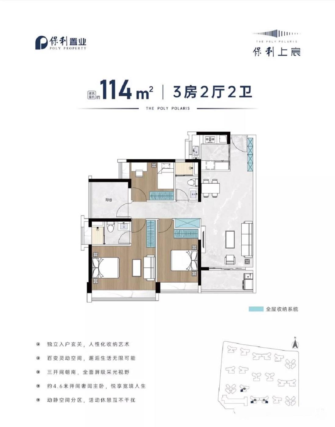 3室2厅2卫-114㎡户型, 3室2厅2卫1厨