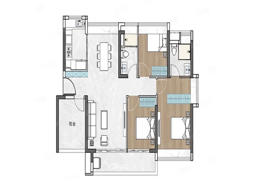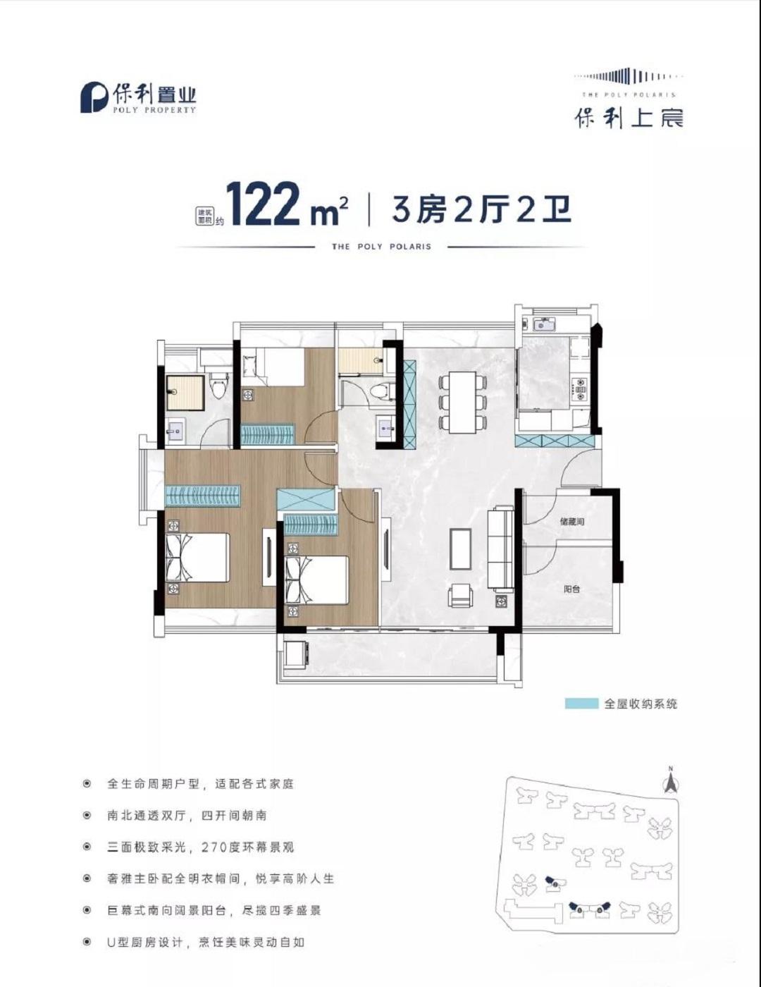 3室2厅2卫-122㎡户型, 3室2厅2卫1厨