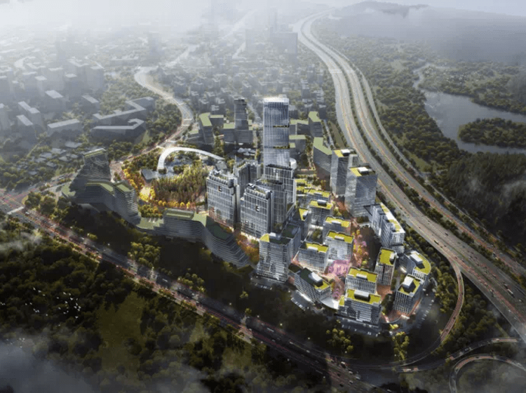 项目以周边自然生态景观为基础环境,以人为本,遵循生态学的原理,实现办公与生活、建筑与空间规划、健康与生态的优质结合。凭借开放性的空间规划,健康全景生态圈,开启办公社区新时代。