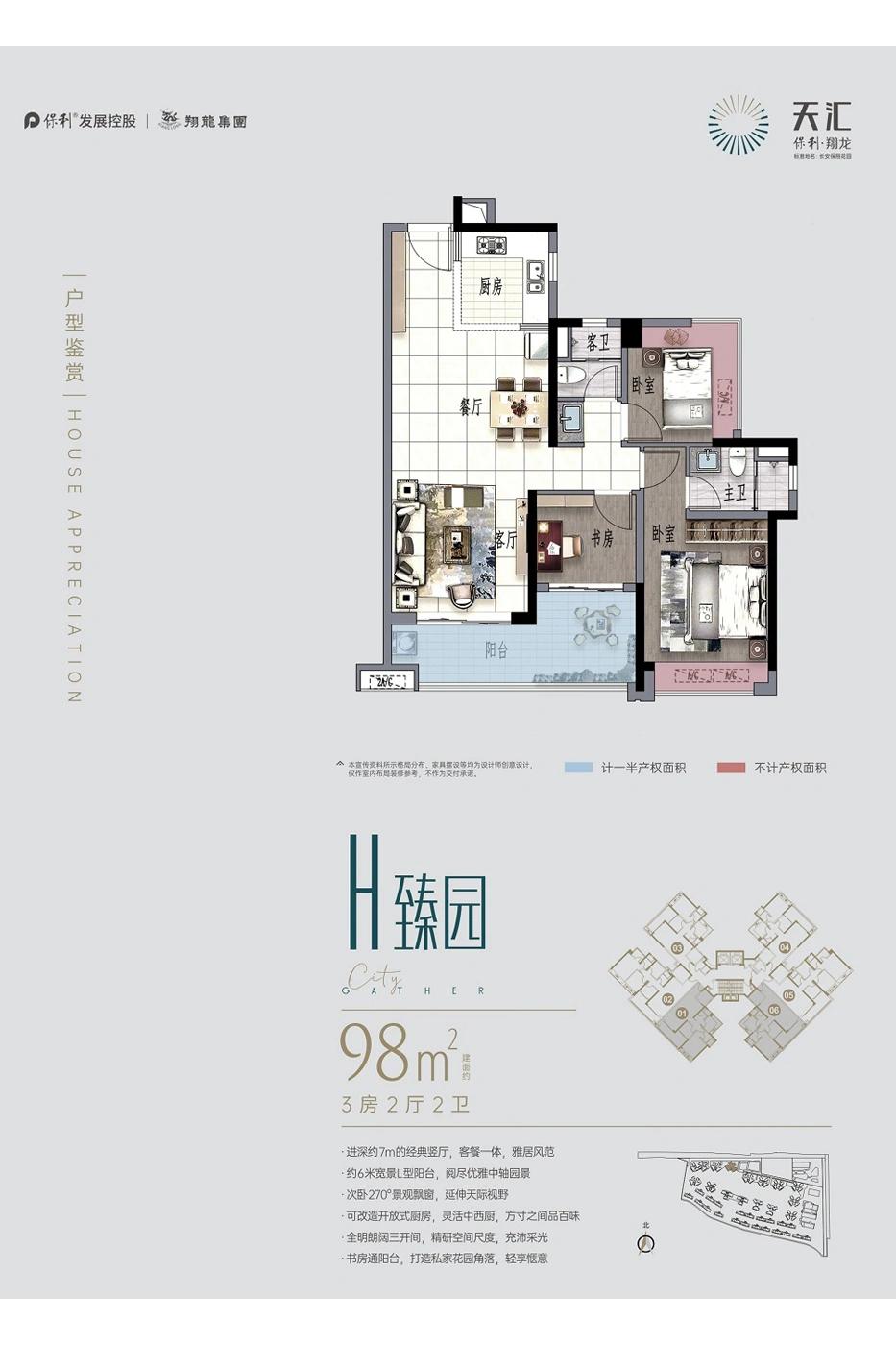 3室2厅2卫-1/6栋建面98㎡户型