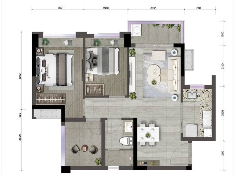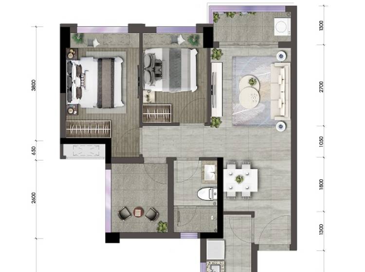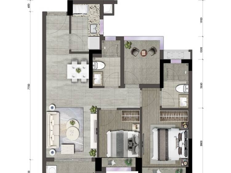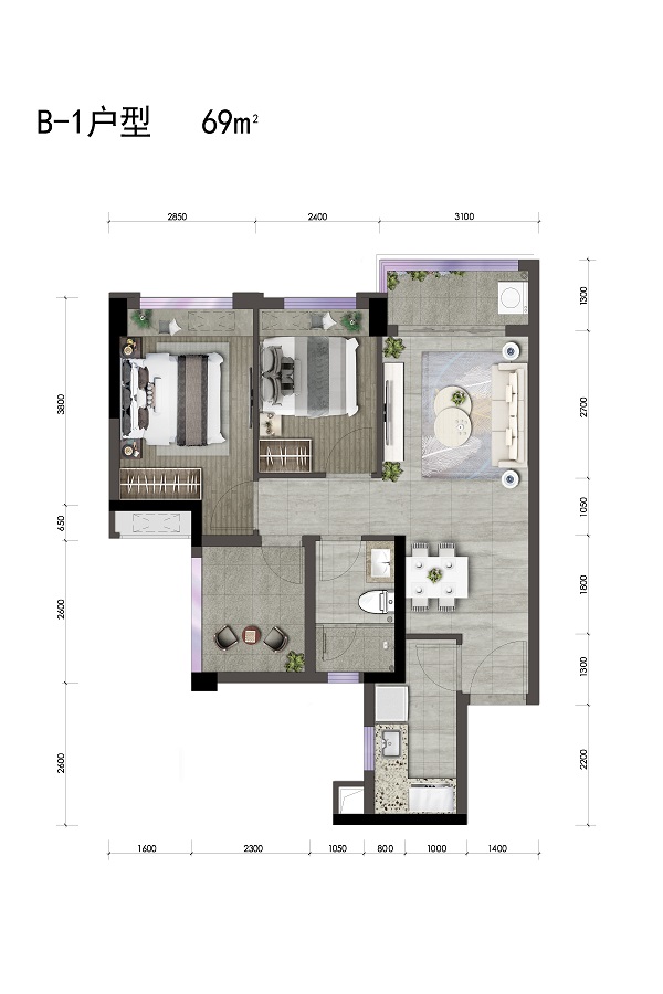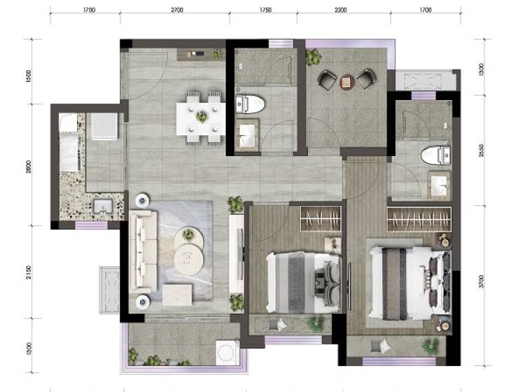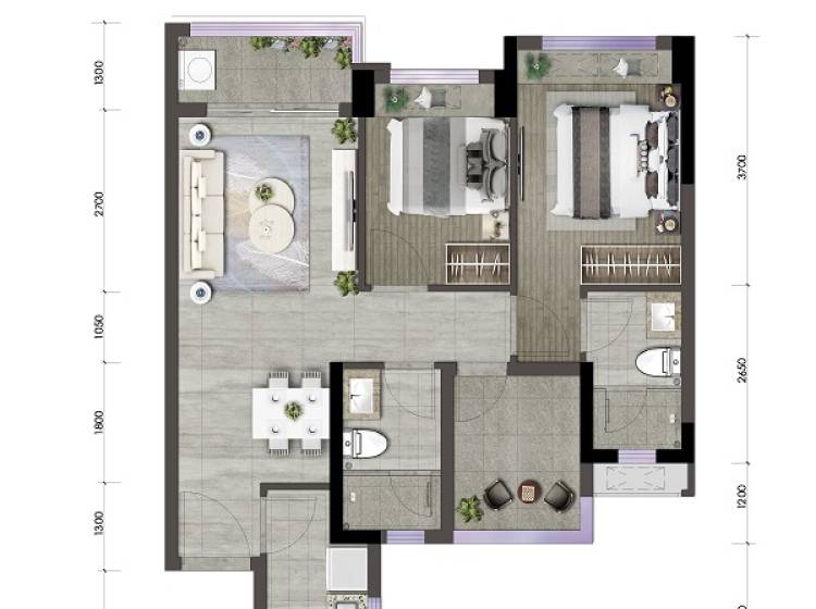 2室2厅2卫-B2-3户型