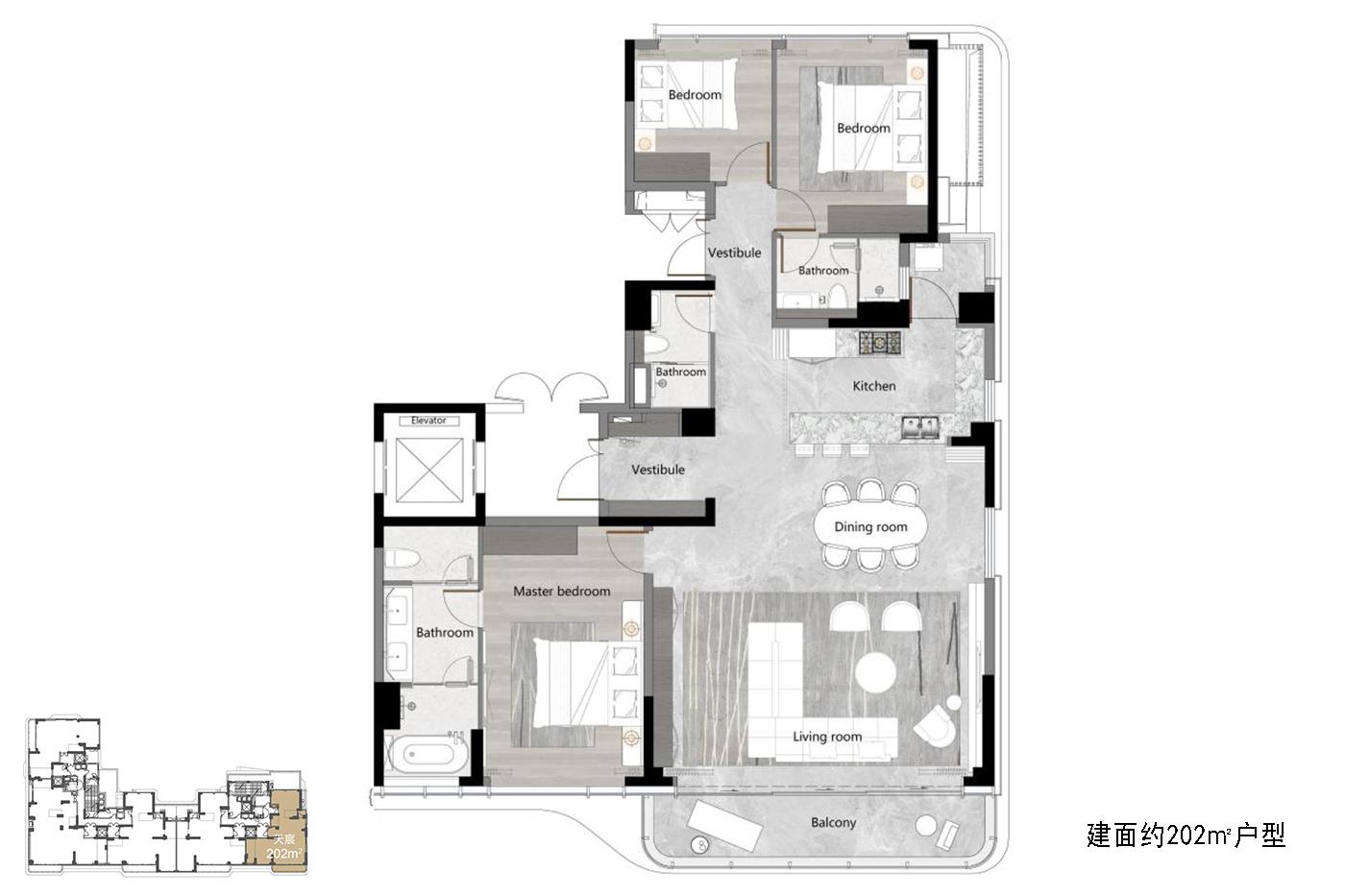 3室2厅3卫-建面约202平户型