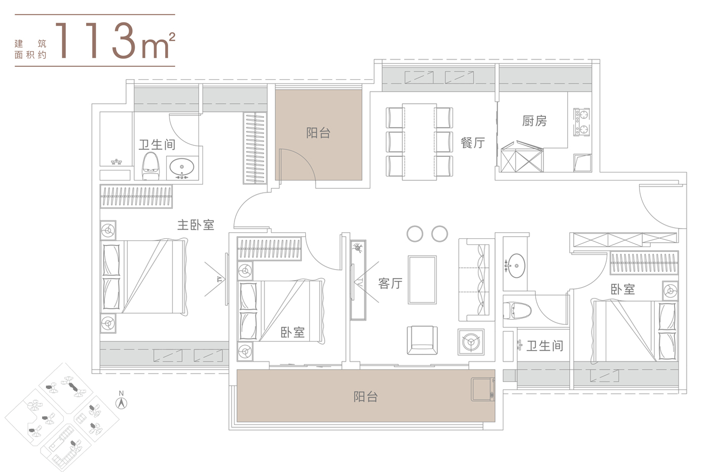 3室2厅2卫-建面113平户型