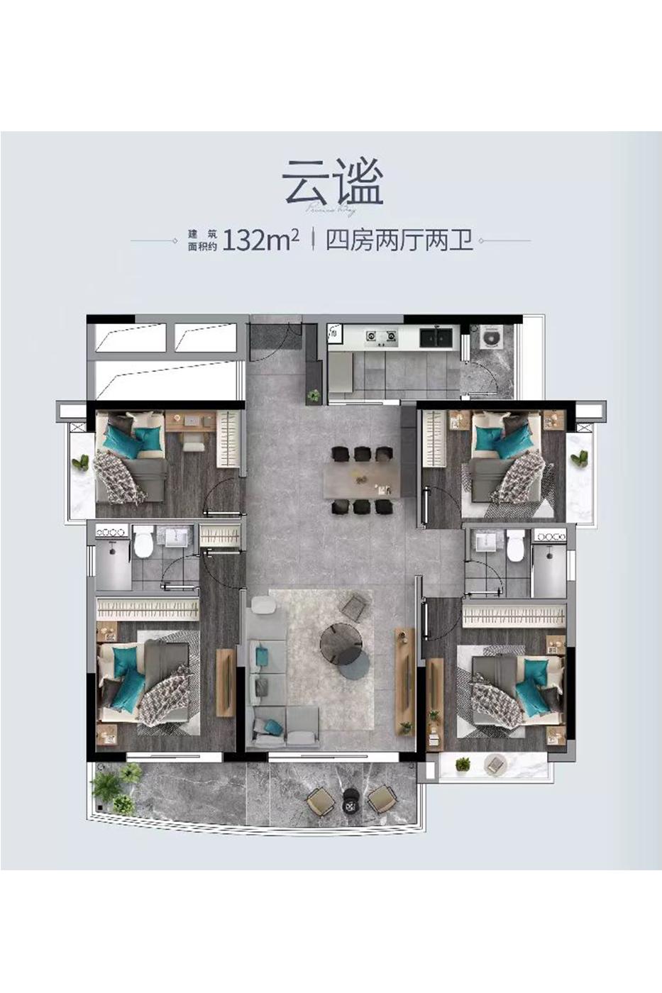 4室2厅2卫-建面132平四房二厅户型