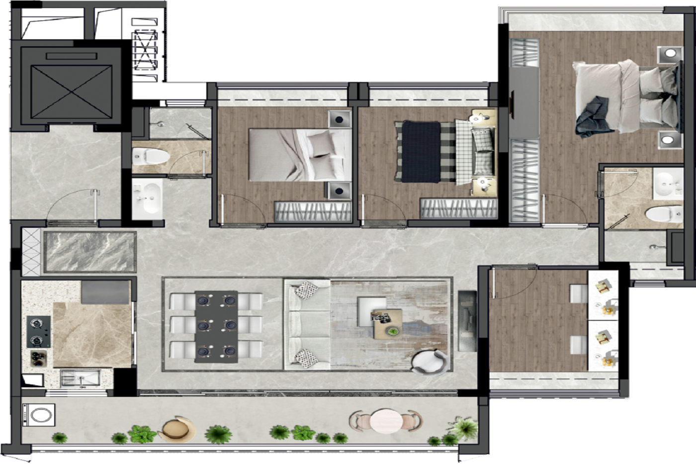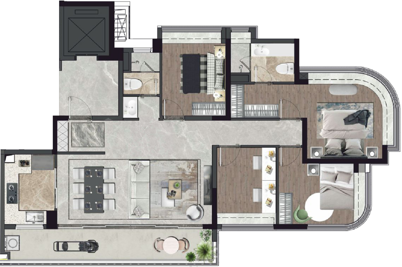 4室2厅3卫-建面143㎡二叠中叠户型