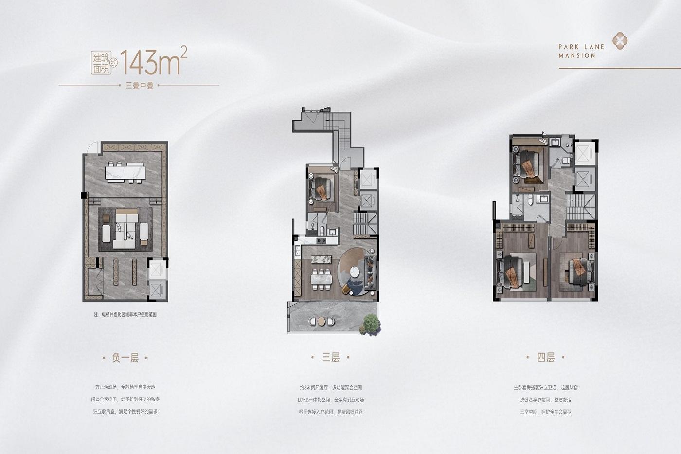 4室2厅3卫-建面143㎡三叠下叠户型