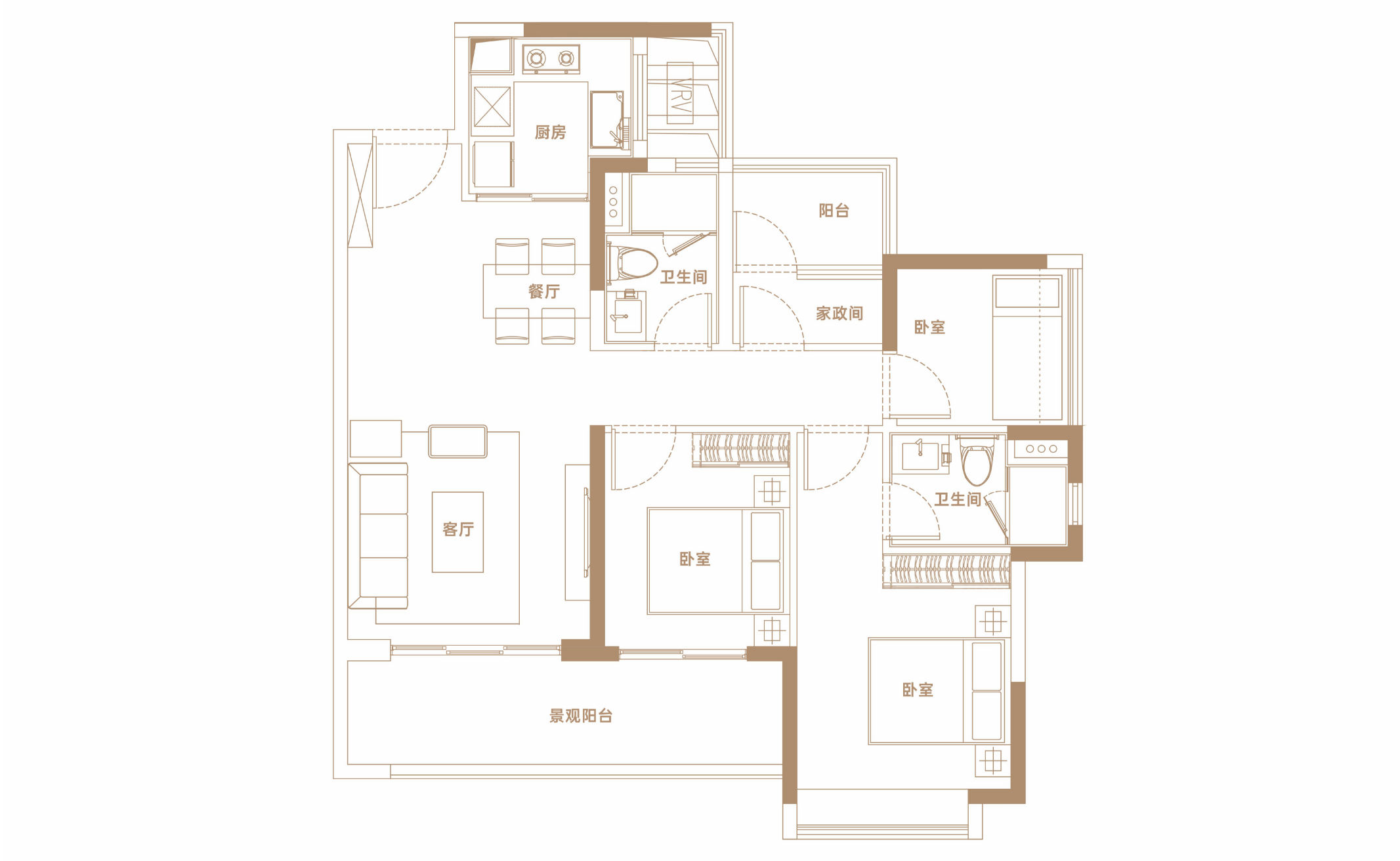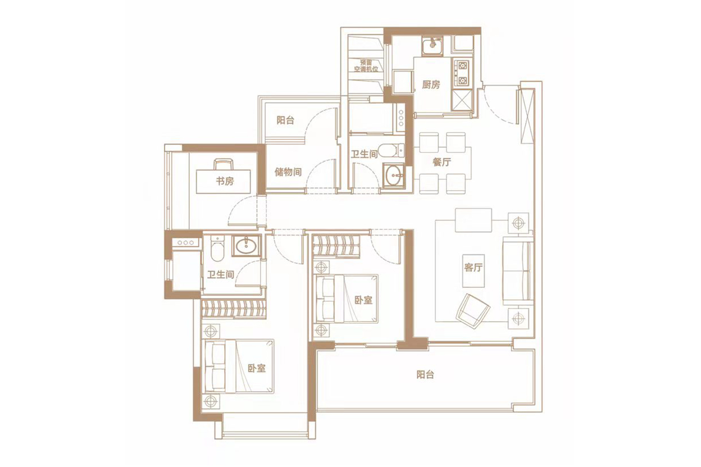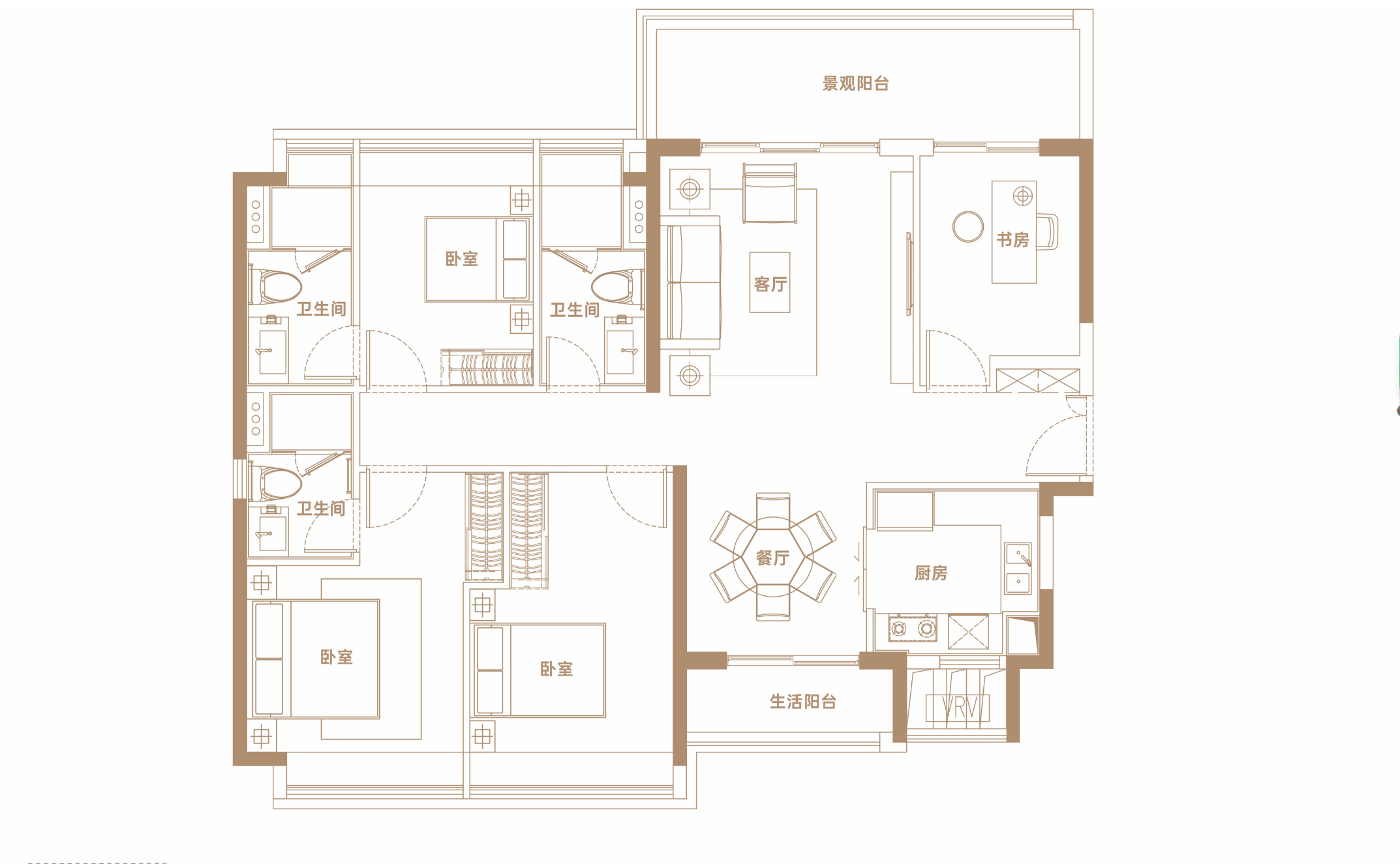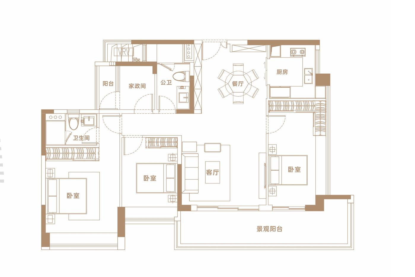 4室2厅3卫-建面142平4房2厅3卫B2户型