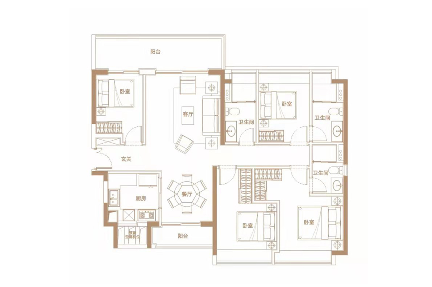 4室2厅2卫-建面约127平户型图