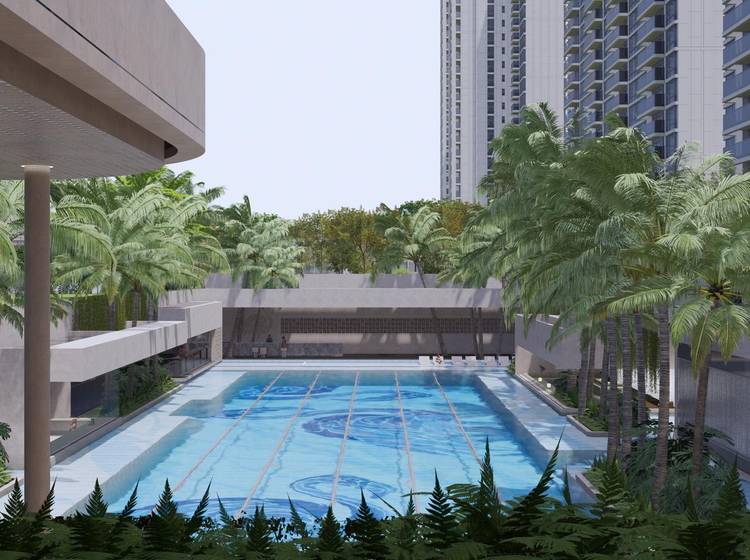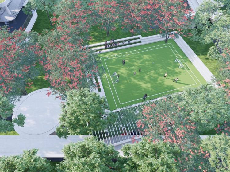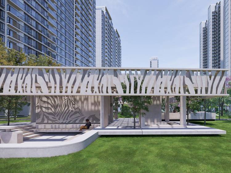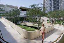 项目配建居民健身场所、宅旁绿地、老年人服务站点、居委会、智能快递末端服务设施、下沉庭院(泳池)、九班幼儿园、三班托儿所等公共配套设施。
