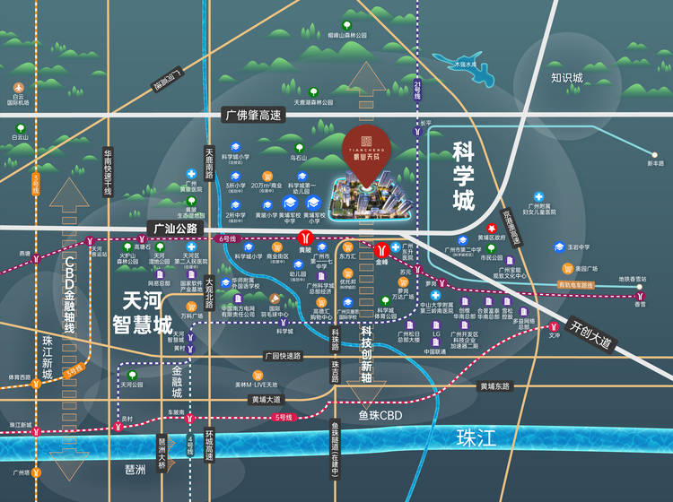 楼盘周边3km范围内有7个商场,包括联世广场、高德汇购物中心(科学城店)、优托邦(科学城店)等购物中心,商业配套成熟,完全可以满足日常购物需求。