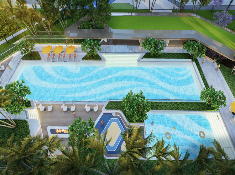 中轴双泳池,时空穿梭儿童乐园、约530米夜光跑道、全龄活动空间