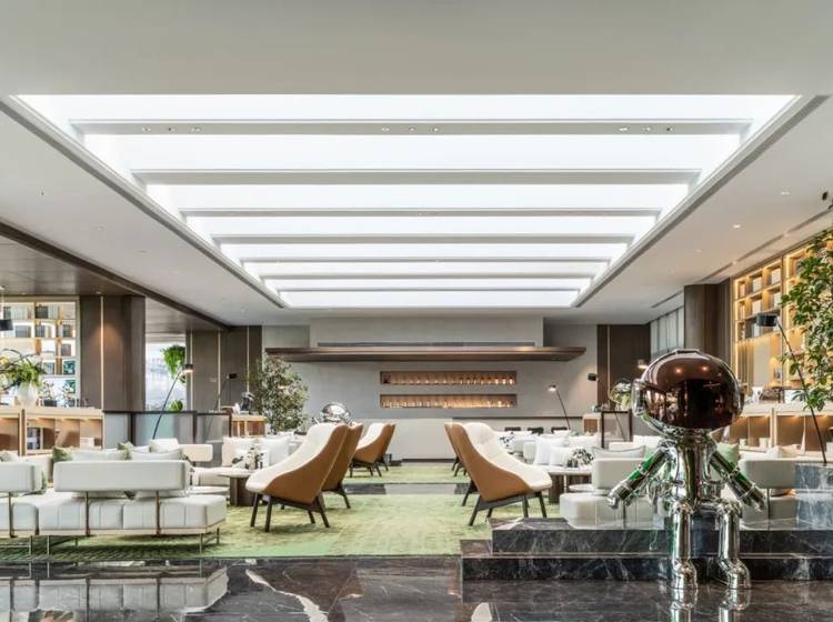 双入户大堂设计,人行刷脸系统、访客预授权系统、车行自动识别系统、人行灯光感应系统、环境灯光感应系统、一体化智慧路灯系统、人景智慧互动系统等一系列科技生活体验。