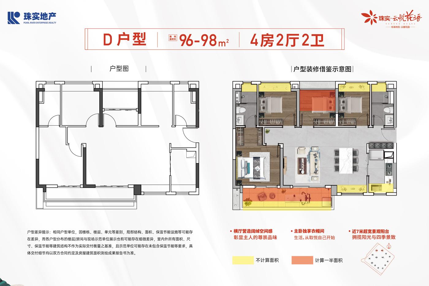 4室2厅2卫-A1/A2/A12栋建面96-98平户型