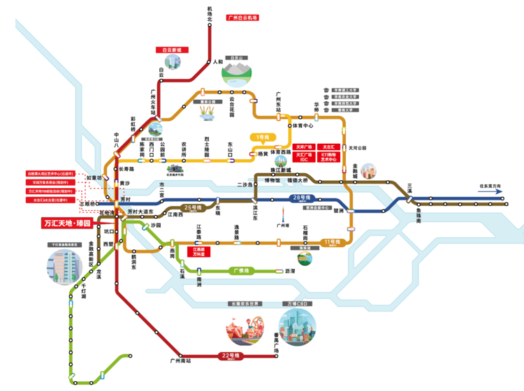 商场:花地湾TOD超链中心(含约18万方商业、约30万方地标级总部办公、约50万方科创产业集群)、华润万象城(规划中)、双太古商业(在建)、立白中心、领展广场、乐峰广场、荔胜广场等