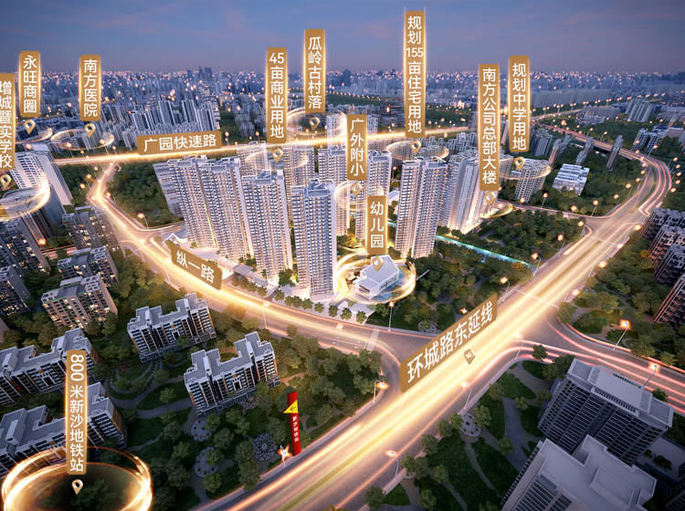 十轨交汇TOD,约15分钟直达天河北,约30分钟抵达琶洲,约40分钟直达珠江新城/广州白云机场/深圳宝安机场,建成后能实现湾区1小时生活圈;