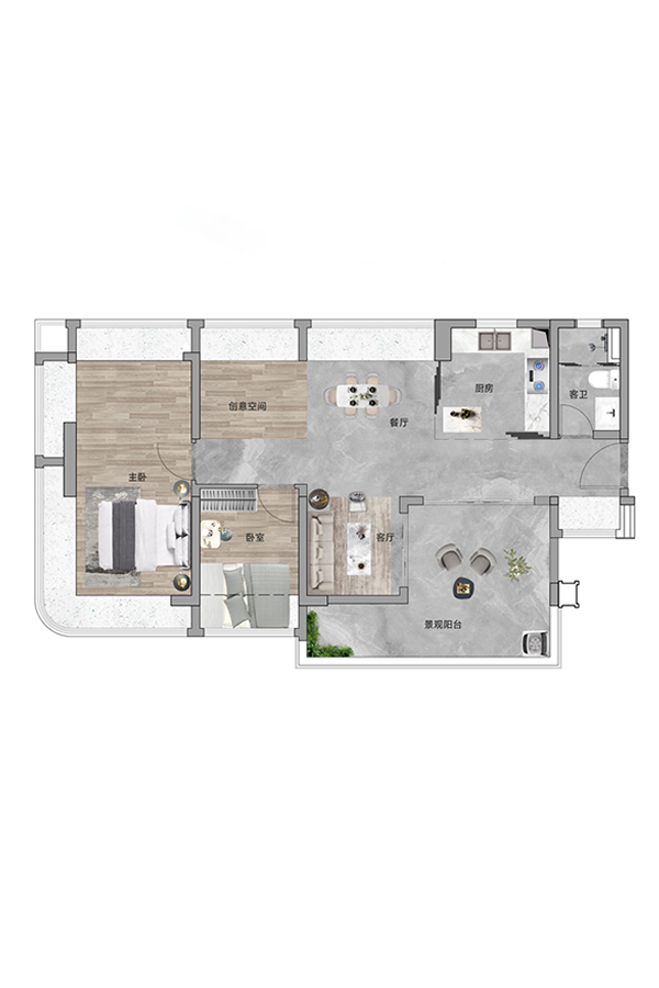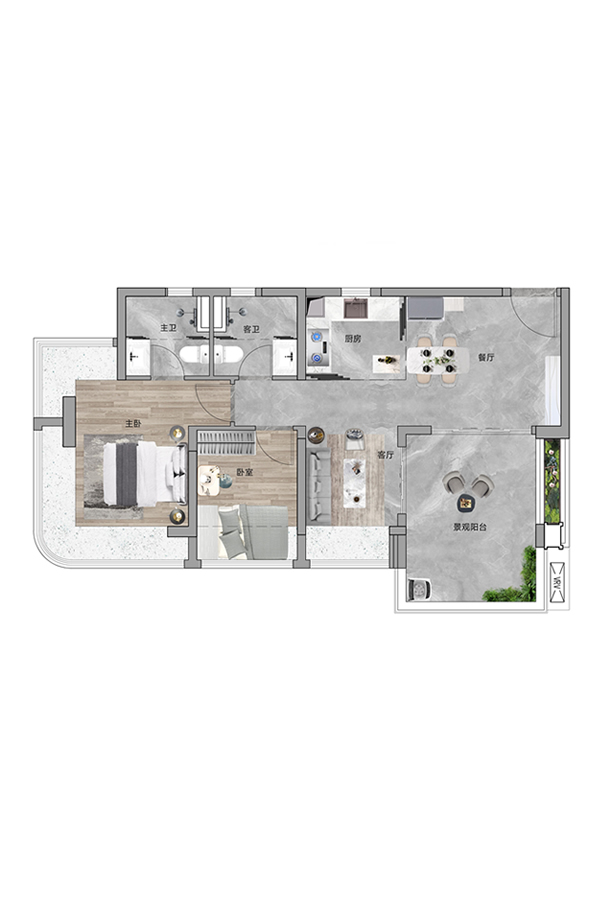 3室2厅2卫-建面约80㎡户型