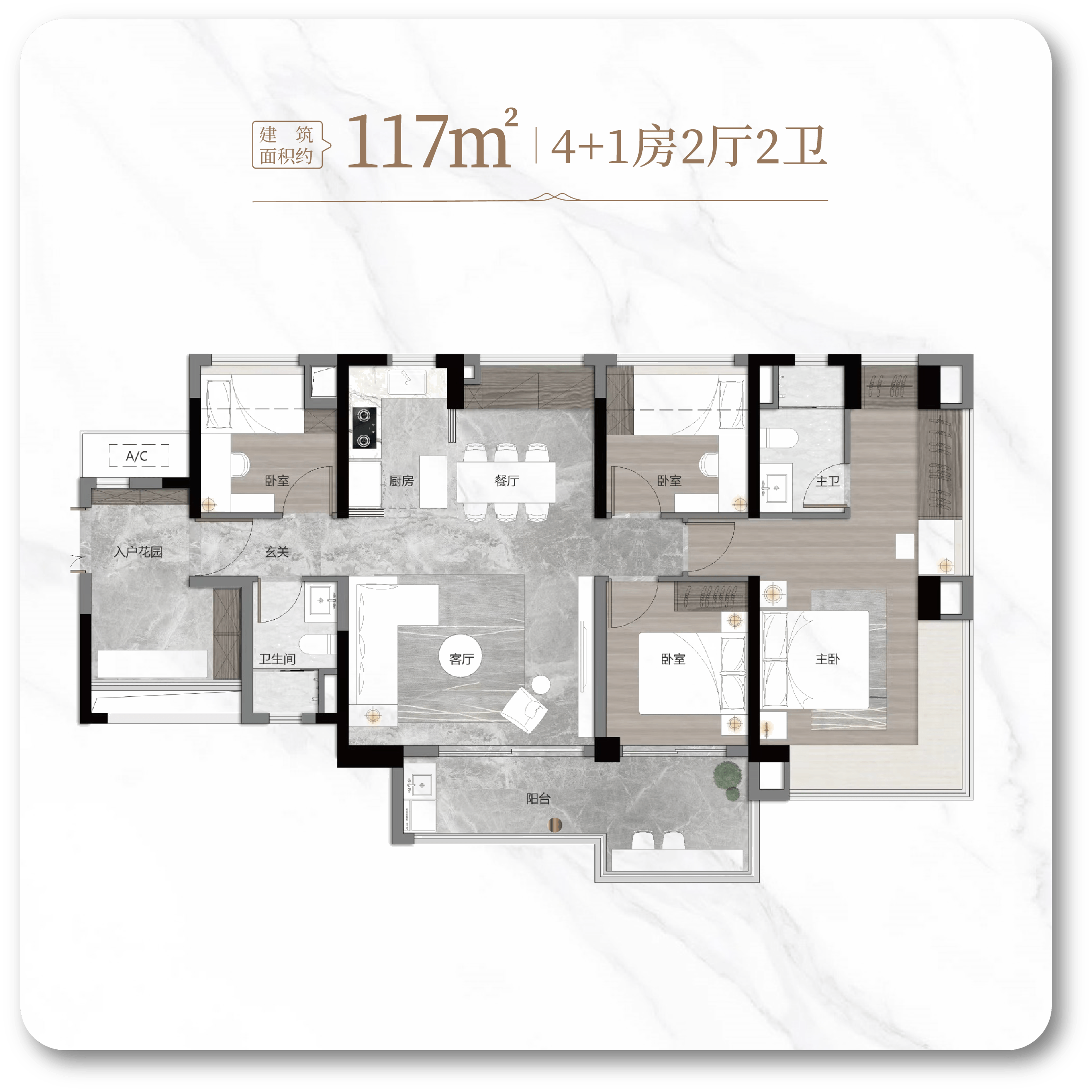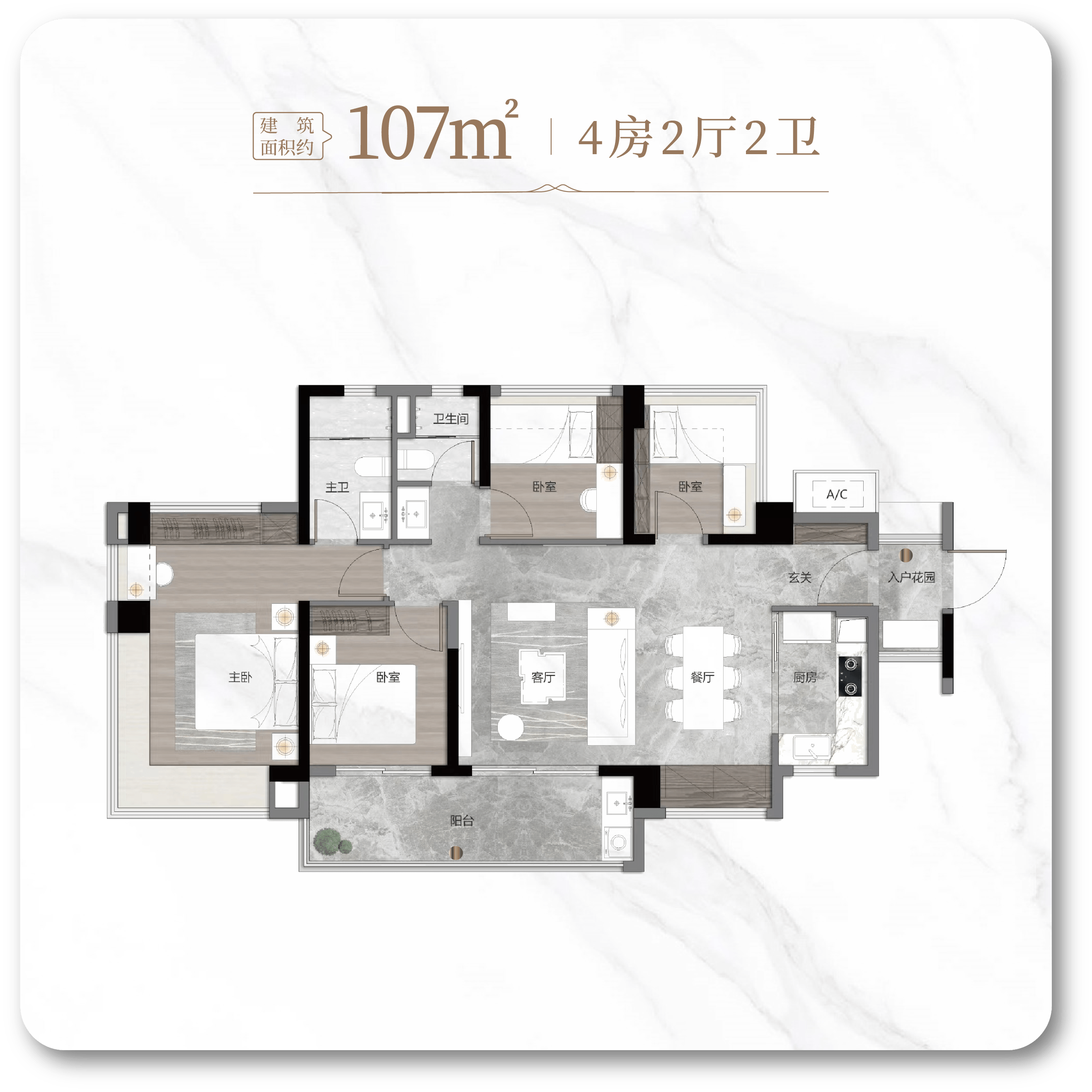 4室2厅2卫-建面约107㎡四房两厅两卫户型图