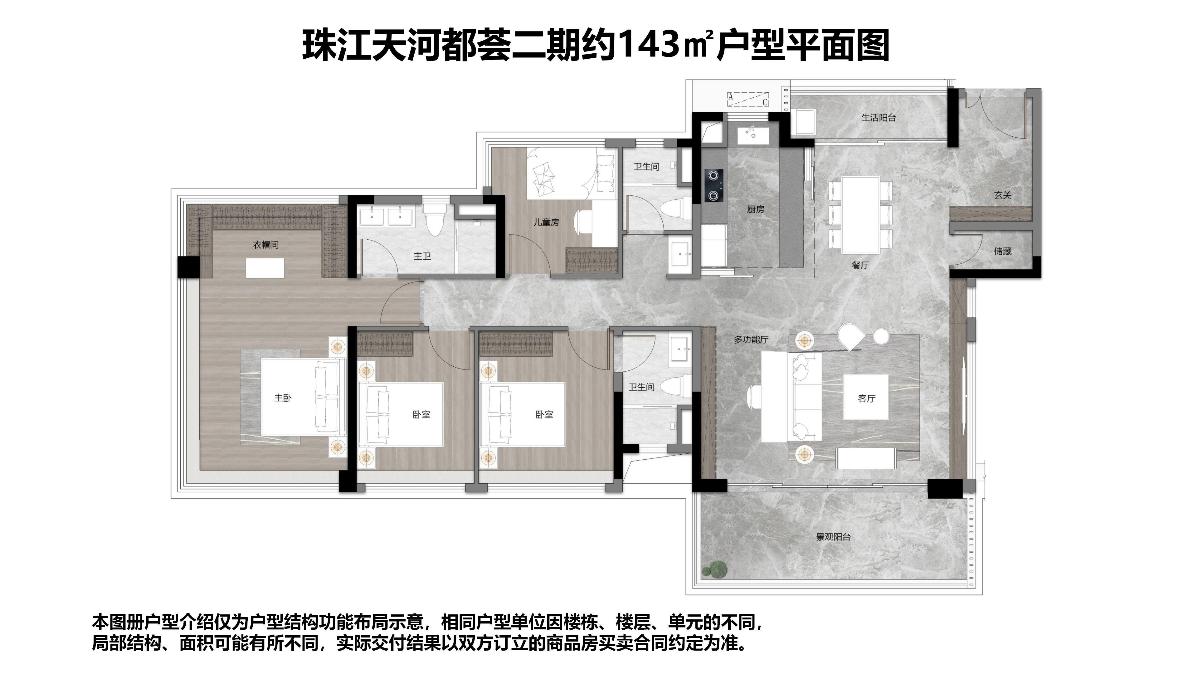 4室2厅3卫-建面143平四房二厅户型