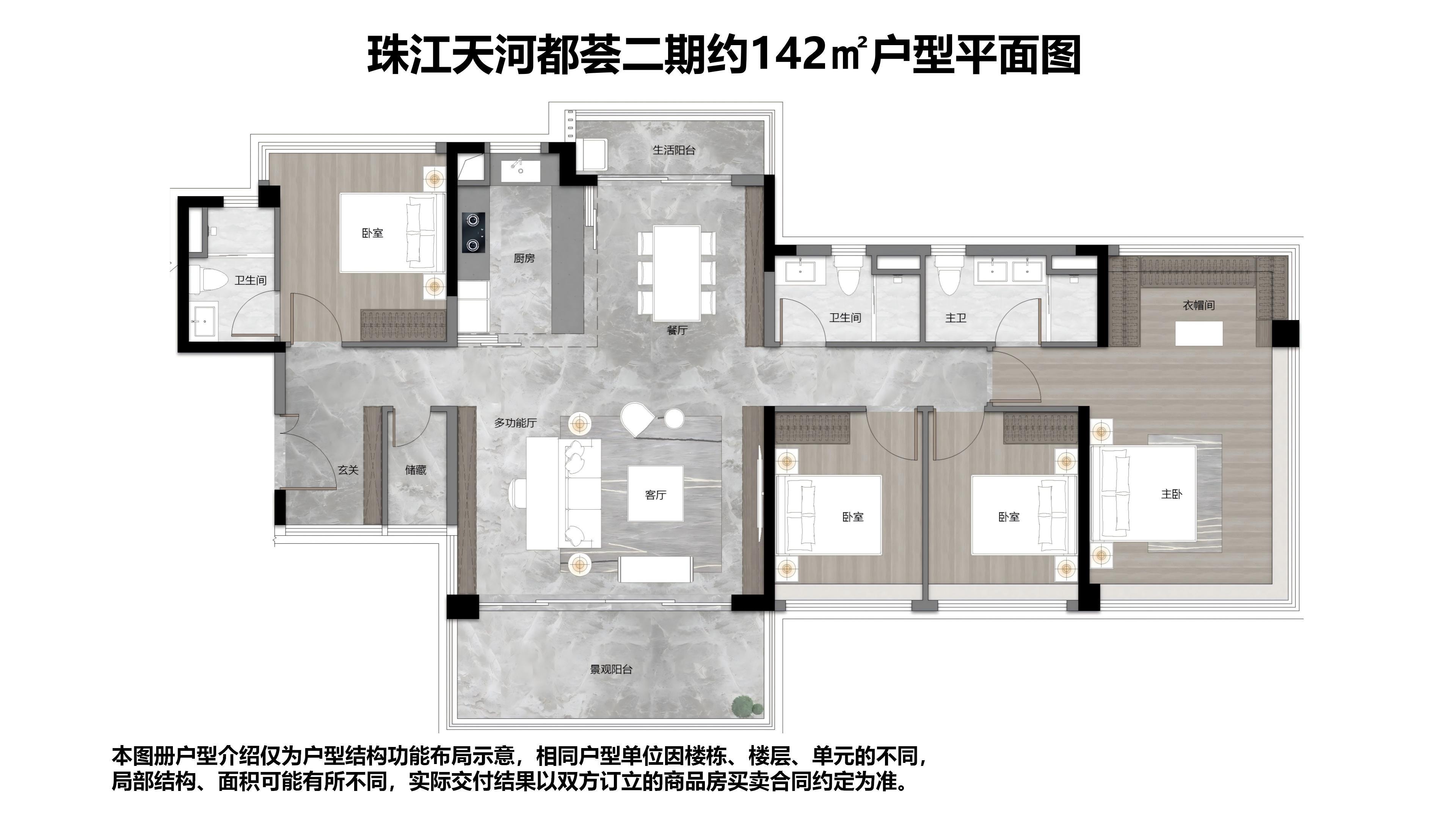 4室2厅3卫-建面142平四房二厅户型