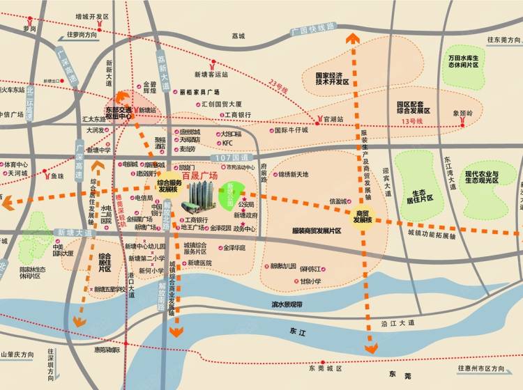 百晟广场位居解放北商业区的核心位置,周边已形成成熟的新塘商业、经济、政治、文化核心区域,东面是新塘公园及新塘镇政府潜力可观。
