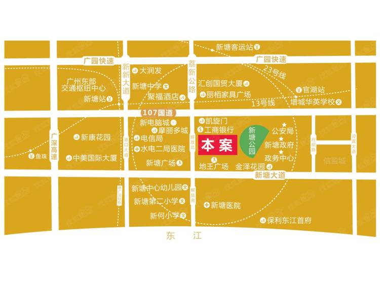 商业配套:新塘广场、地王广场、国际牛仔城、金福星广场、大润发、丽柏家具广场等